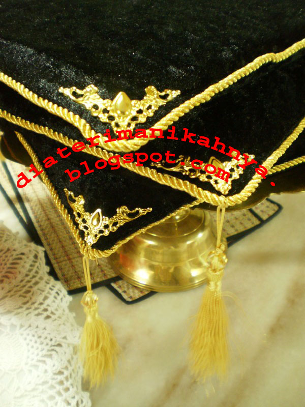 Kain bantal tidak menggunakan satin pasal ibu kata, satin licin dan susah nak kemaskan pada penjuru. Lagipun, satin licin, takut pula hantaran tergelincir. Jadi kami beli kain di Kamdar, jenis kain tidak diketahui, tapi seakan-akan velvet + baldu. Murah sahaja, kurang RM5/ semeter. Kamdar memang berbaloi. Bucu untuk sudut bantal beli di kedai Riben Bunga (ke namanya Bunga Riben??), ibu jahitkan disetiap sudut bantal. Jurai-jurai beli di SSF. Span dalam bantal, memang sudah dibeli lama, daripada warna putih span tu, tukar ke warna kuning pasal lama benar simpan. Tak tau ayah beli kat mana, tapi span biasa yang jenis cam span bahu baju kurung tu kot. Takda nak pakai kekabu. Kekangan kos. Dalam bantal ni, kami letak cupboard, untuk kukuhkan kedudukan bahagian bawah bantal. Ni idea Nity, thanks dear!